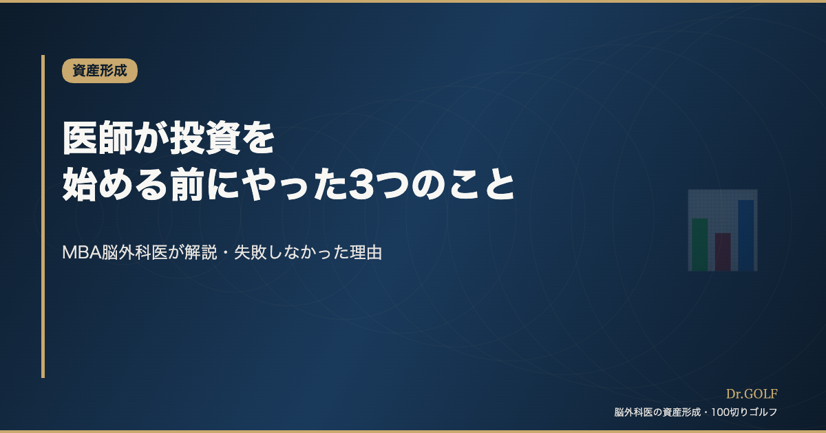 医師になって最初の給与明細を見たとき、手取りが想定より少なくて驚いた。社会保険・所得税・住民税が合わせて20〜30%引かれていた。「こんなに引かれるのか」と思いながら、そのまま銀行の普通預金に入れていた。投資を始めたのは研修医3年目。遅すぎたと今でも思う。本記事では、「もっと早く知っておけばよかった」という3つのことを、MBAを持つ脳外科医の視点から正直に書く。