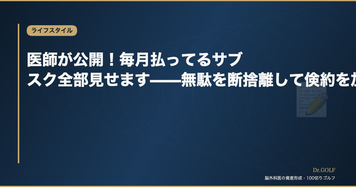 「サブスク、いくら払ってるか把握してる?」——先日、同僚にそう聞かれてすぐに答えられなかった。気づいたら月3万円以上が自動引き落としになっていた、なんて話は医師に限らず珍しくない。