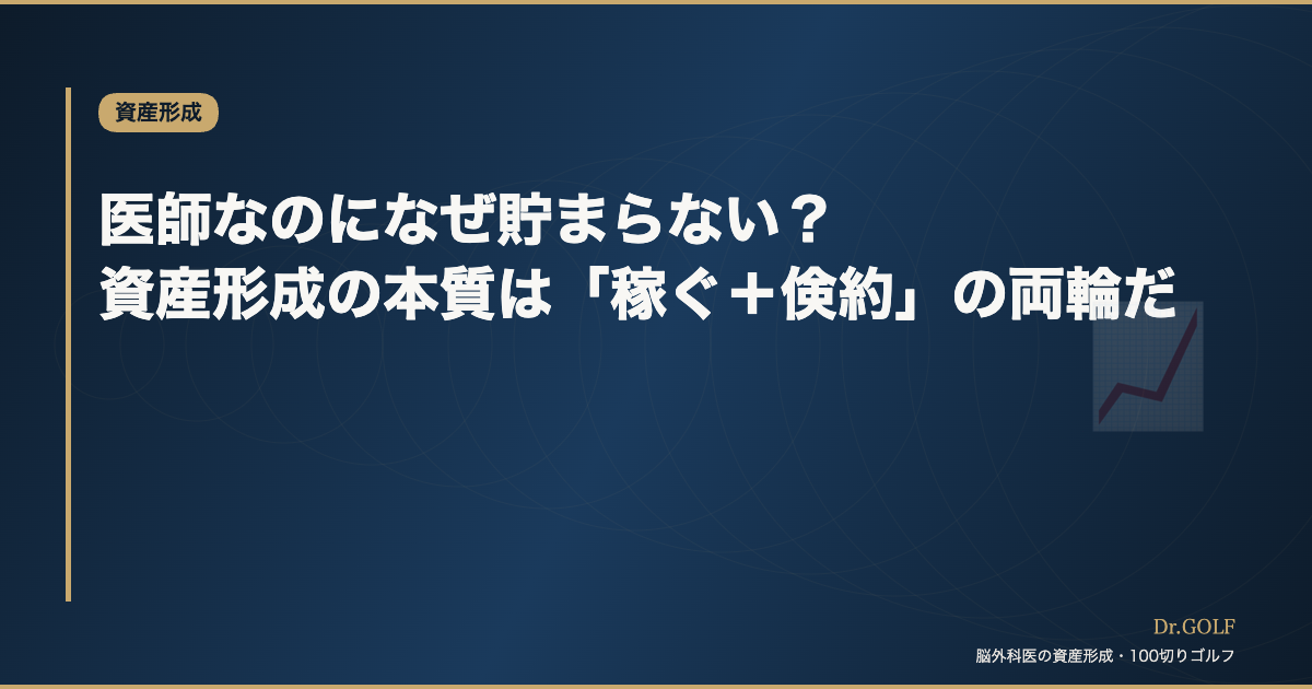 医師なのになぜ貯まらない?資産形成の本質は「稼ぐ+倹約」の両輪だ