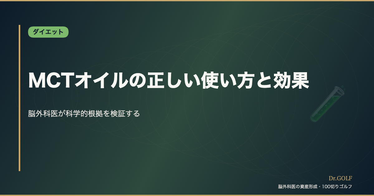 MCTオイル(Medium Chain Triglyceride Oil)は、ダイエット・ケトジェニック・アスリートの世界で爆発的に注目されています。しかし「ただのヤシ油でしょ」「飲めば痩せる魔法の油」など、誤解も多い栄養素です。本記事では、正しい使い方・効果・注意点を脳外科医の視点から科学的に解説します。