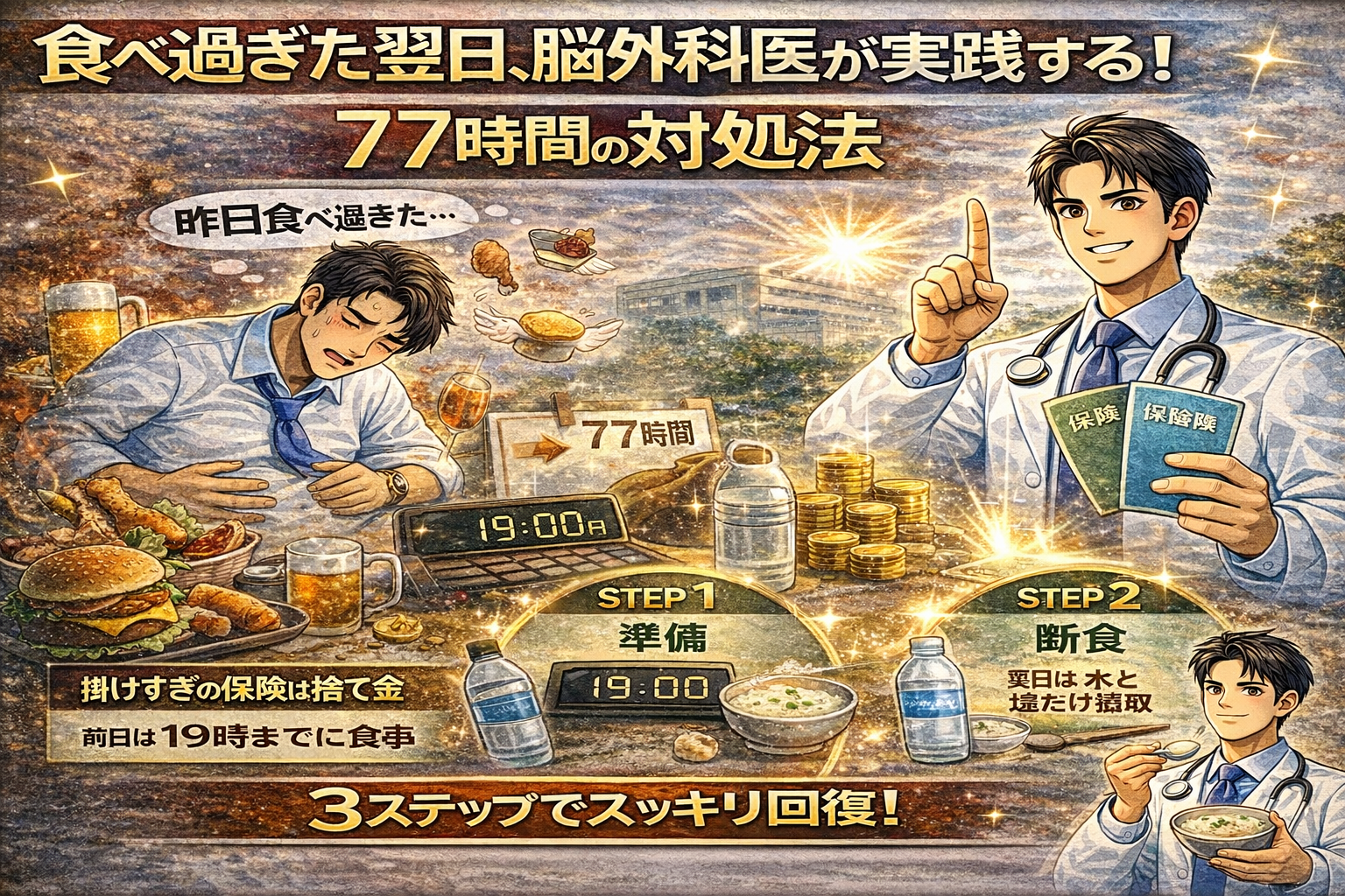 脳外科医の視点からエビデンスベースで解説します。結論から言うと、食べ過ぎた翌日にやるべきことはほぼ何もない、が正解に近いです。